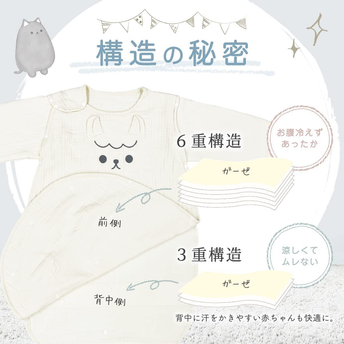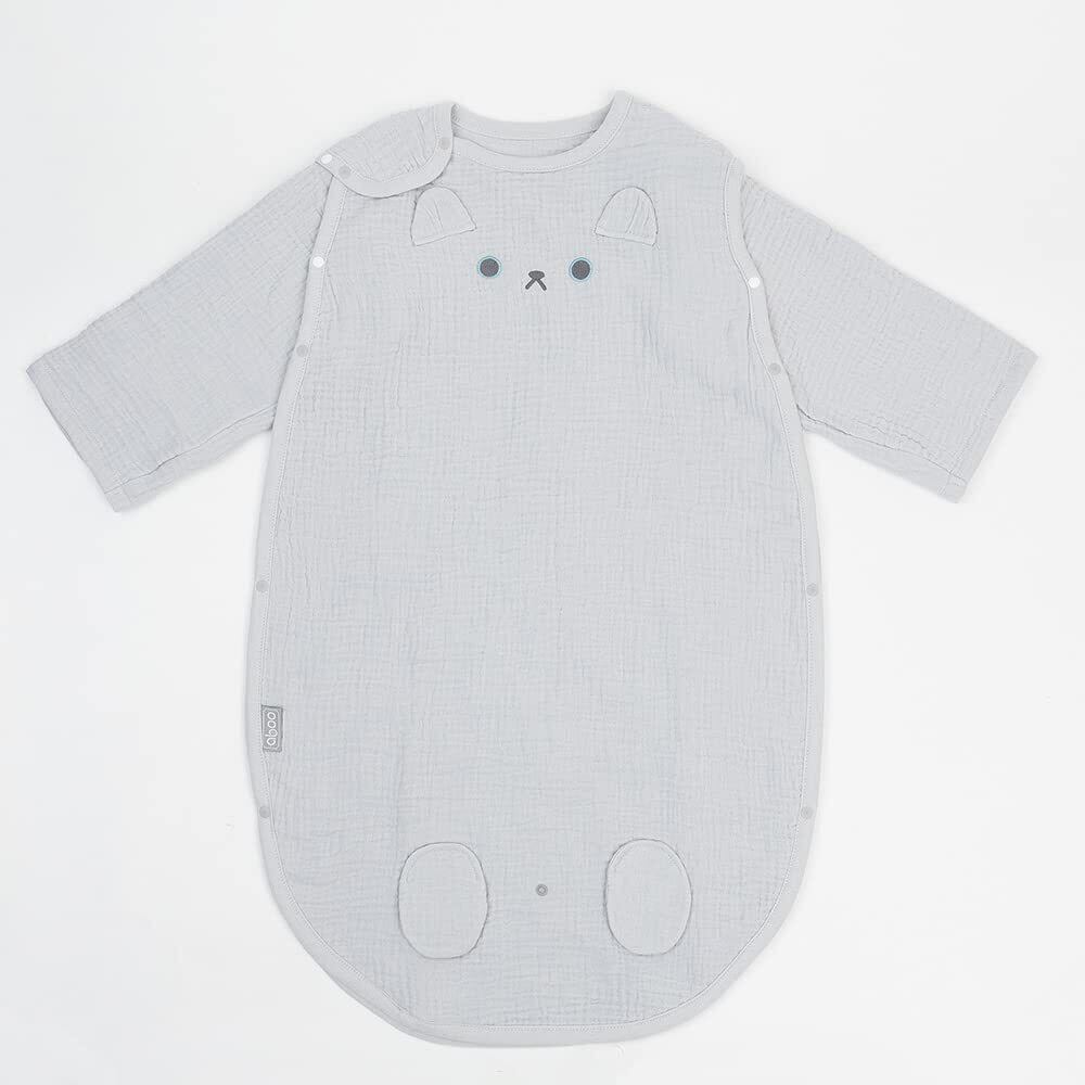aboo(アブー)スリーパー 0~6歳 長さ変えられる 長袖着脱可能 6重ガーゼ コットン100% 着るお布団 背中涼しくお腹暖かい 赤ちゃん ベビー 箱入り ギフト 出産祝い 通気性 保温性 洗濯機OK(グレーねこ)