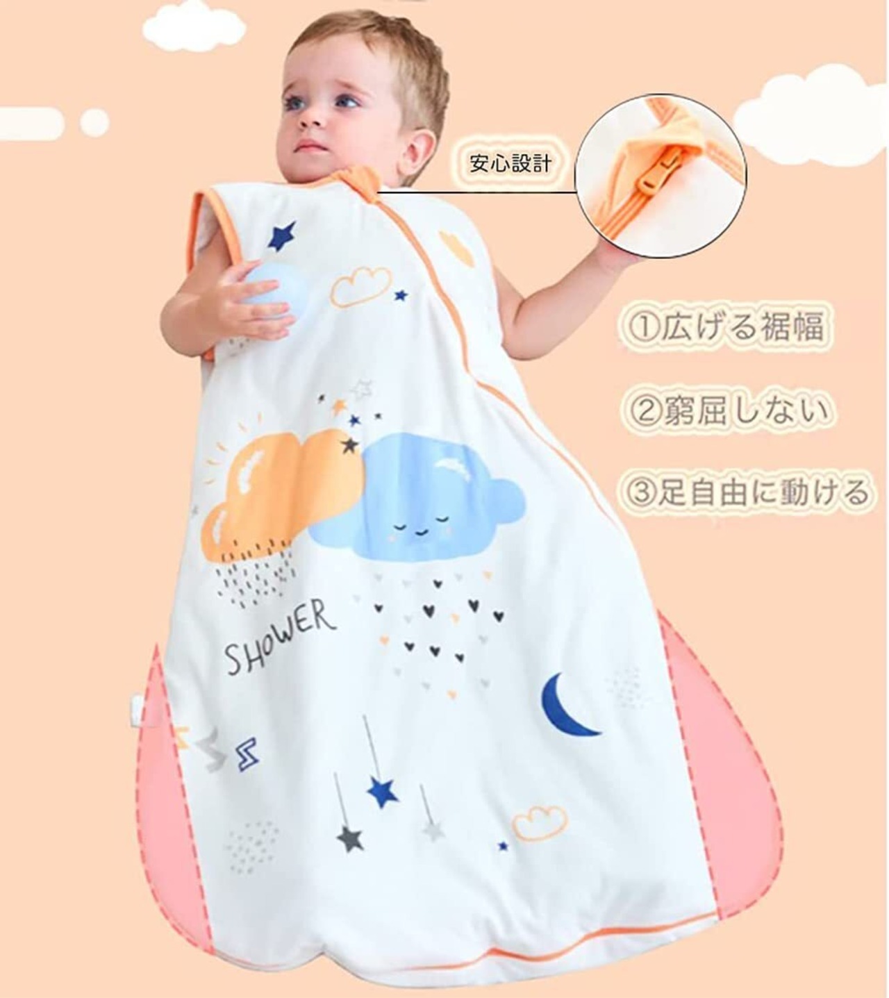 保温性にも優れており、赤ちゃんが布団を蹴飛ばしても寝冷えを防ぎます。春、秋、冬に最適で、可愛らしいデザインが特徴です。