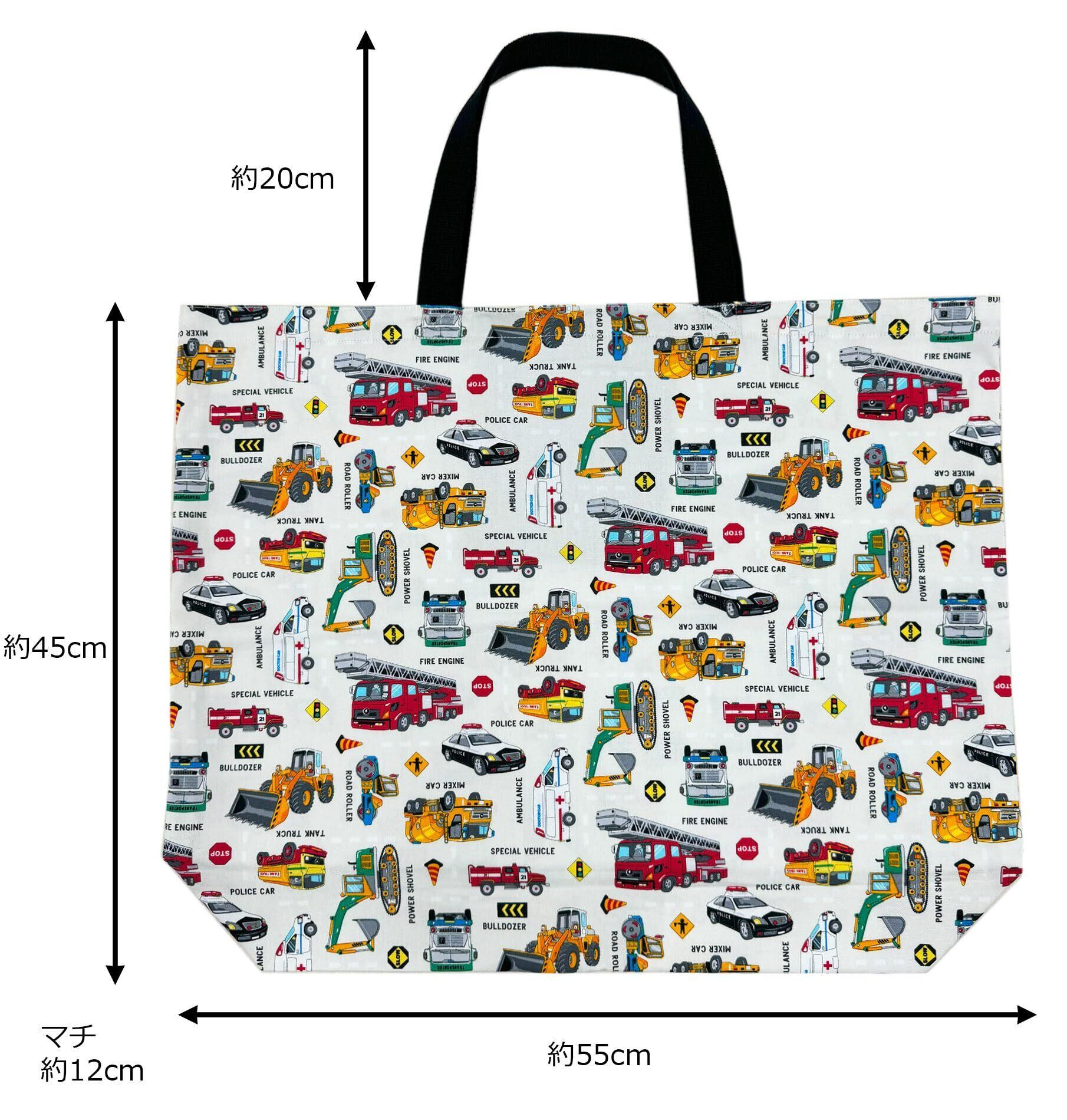 【素材】綿100% 【サイズ】縦:約45cm / 横:約50cm / マチ:約12cm ※手作りのため、仕上がりに多少の誤差(±5mm程度)が生じますことを予めご了承ください。 【お名前タグ】バッグ内側にあり