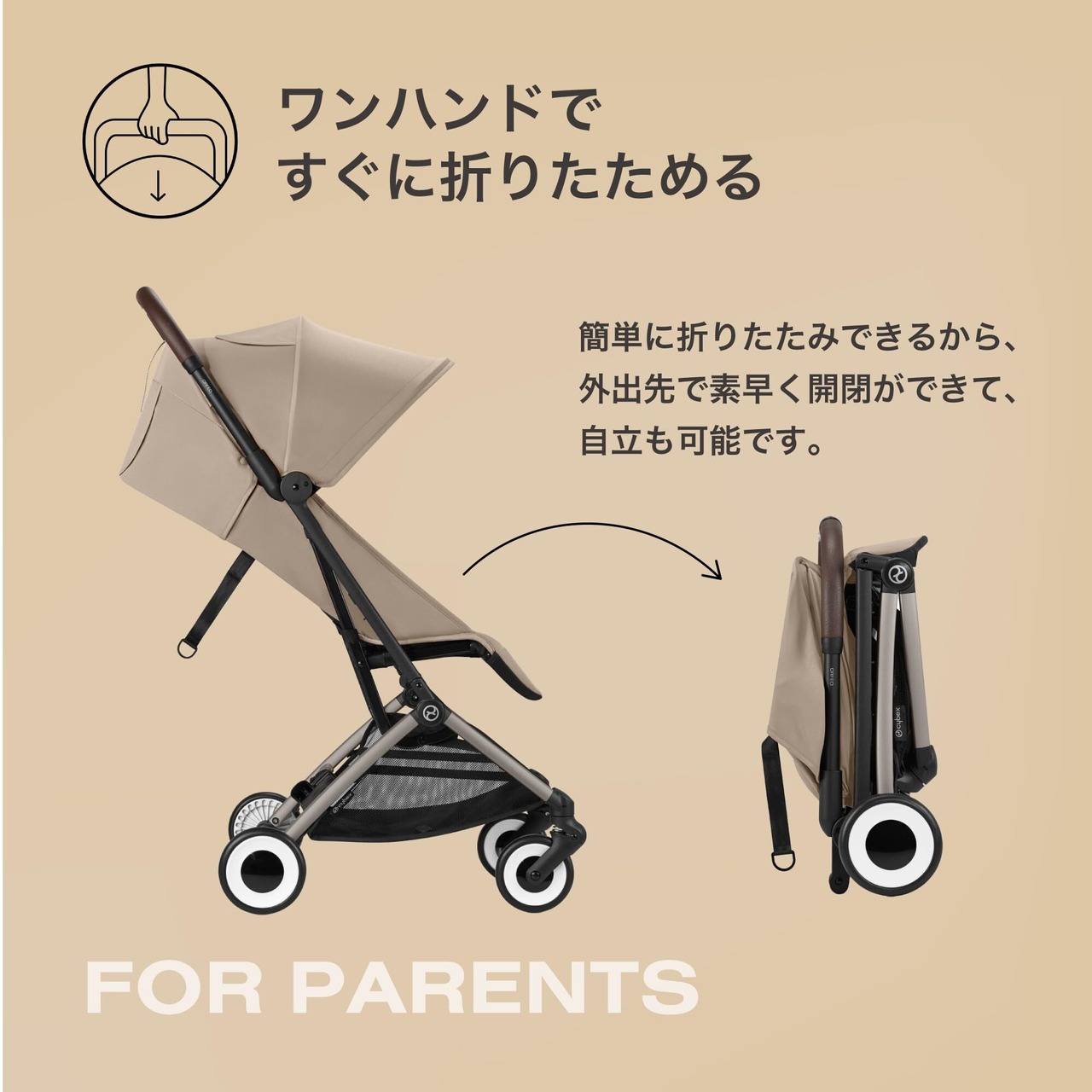 ●サイベックスの「オルフェオ」は、「ペアレンツの快適な使い心地」と「お子さまの快適な乗り心地」を兼ね備え、日常のお出かけや旅先での観光など、行動の幅を広げる。