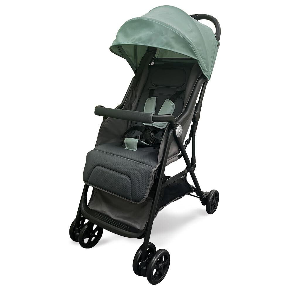 アイリスプラザ B型 ベビーカー 折りたたんだ後も自立して置ける 軽量 5点式シートベルト 無段階リクライニング バスケット付き モスグリーン