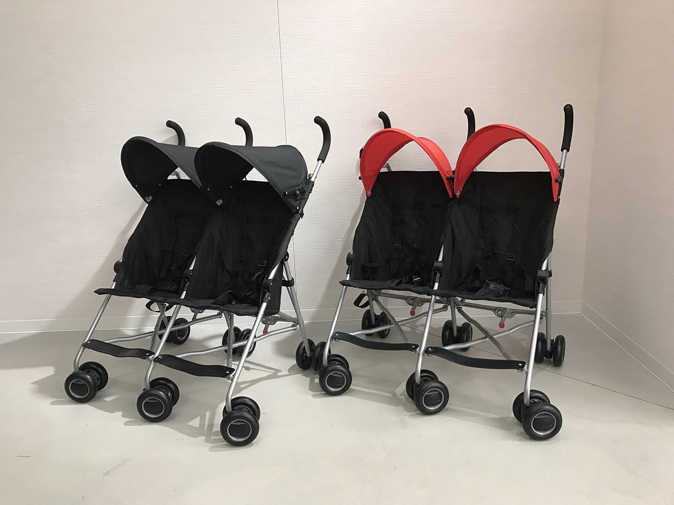 ●重さ約5kgのアルミフレーム製のツインズベビーバギー。