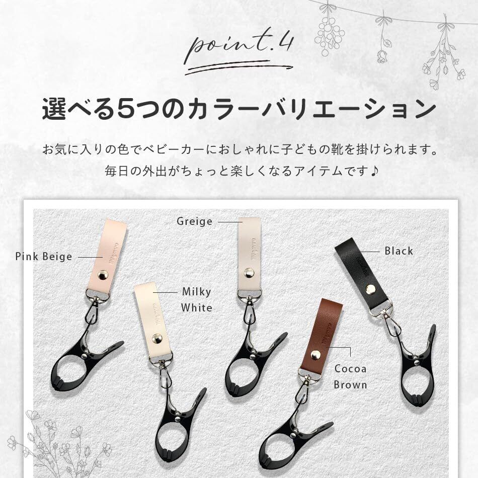 【選べる5つのカラーバリエーション】お気に入りの色でベビーカーにおしゃれに子どもの靴を掛けられます。毎日の外出がちょっと楽しくなるアイテムです