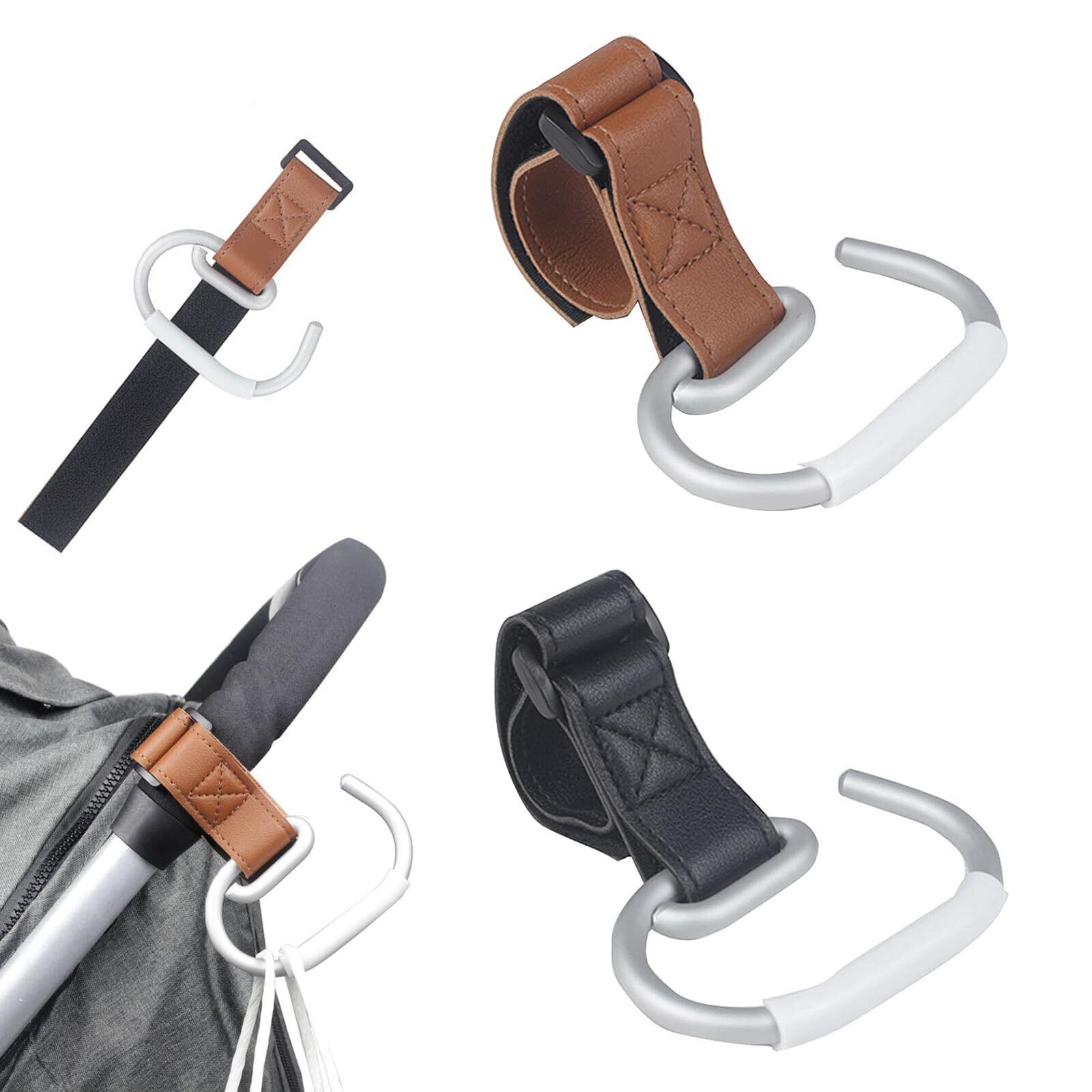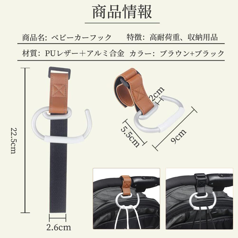 【高品質素材】ベビーカーフックの本体はPUレザーとアルミ合金で作られており、頑丈で耐摩耗性、防水性、防錆性に優れています。 フック部分には柔らかい滑り止めシリコンチューブが付き、滑りにくいです。