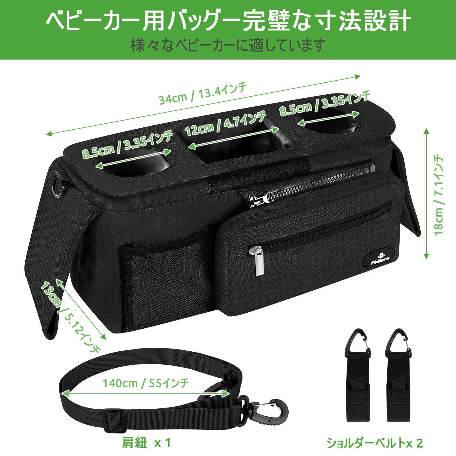 Philornベビーカー バッグ 大容量 撥水丈夫軽量便利 ベビーカー用バッグ ベビーカー ドリンク ホルダー おむつポーチ 哺乳瓶 スマートフォン 収納 手持ち肩掛け2way ショルダーバッグ ベビーベッドベビーカー掛け 多機能 取り付け簡単オーガナイザー ポケット ベビーカーバッグマザーズバッグ (つや消し黒)