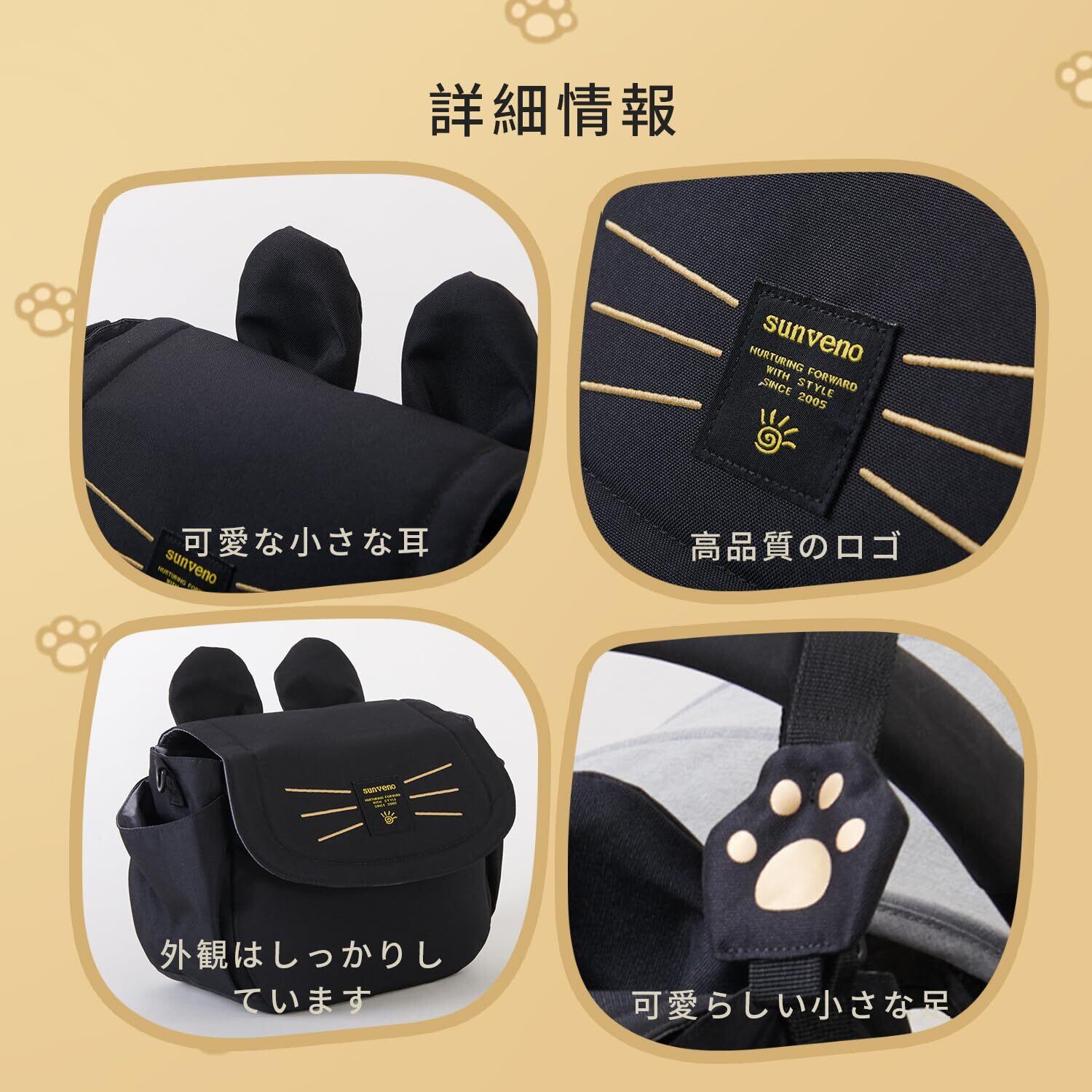 Sunveno ベビーカー バッグ、ベビーカー用の収納バッグ、ママバッグ、ベビーカーに取り付け可能、便利な片肩斜め掛けバッグ、赤ちゃんの必需品を持ち運ぶのに最適(黒色)