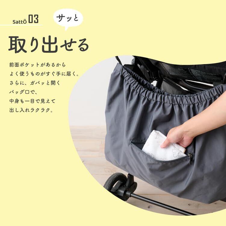 毎日のおでかけを、3つの“サッと”でスムーズに。 ベビーカー用の収納に悩んでいるママ・パパにぴったりな、ベビーカーアンダーバッグ「SattÖ!(サッと)」。 「サッと外せる」「サッと持てる」「サッと取り出せる」3つの機能で、育児中のおでかけがぐっと快適になります。 ワンタッチジョイント仕様で、荷物を入れたままでも簡単に取り外し可能。そのままバッグのように片手でラクに持てる長めの持ち手付きで、移動もスムーズ。 さらに、前面ポケットと大きく開く開口部で中身が見やすく取り出しやすい構造に。 撥水素材で汚れに強く、滑り止め付きベルトでずれにくい設計。低重心だから転倒のリスクも減らせます。 デザイン性と使いやすさを両立した、ママパパ目線の優秀アンダーバッグです。