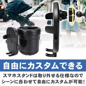 ドリンクとスマホが一緒に置けるドリンクホルダーです。バッグから出し入れする必要なくハンズフリーで行動できるため、お子様とのお出かけを快適にお過ごしいただけます。