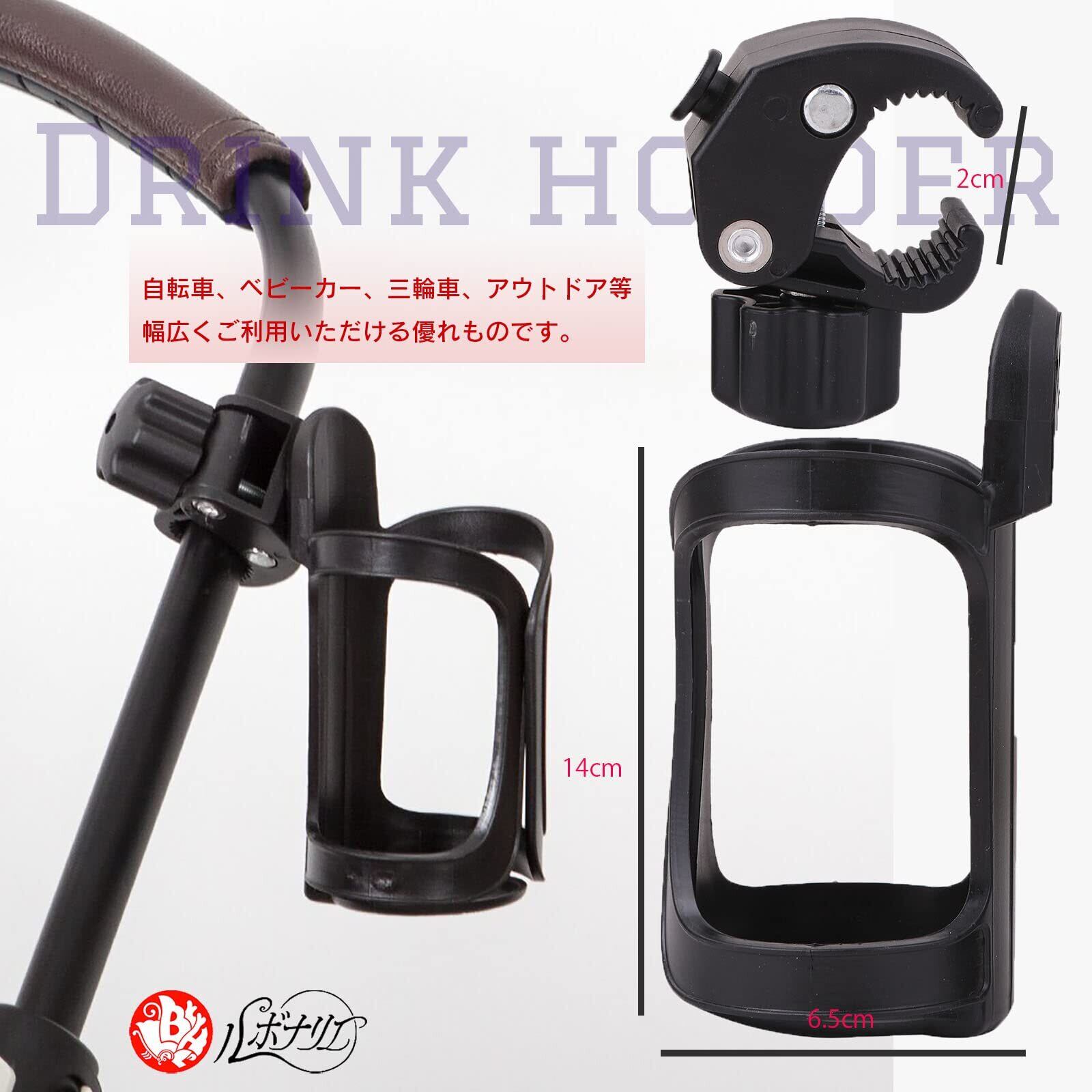 ルボナリエ ドリンクホルダー ペットボトル ボトルゲージ ベビーカー カップホルダー バイク トロリー (ブラック 2個)