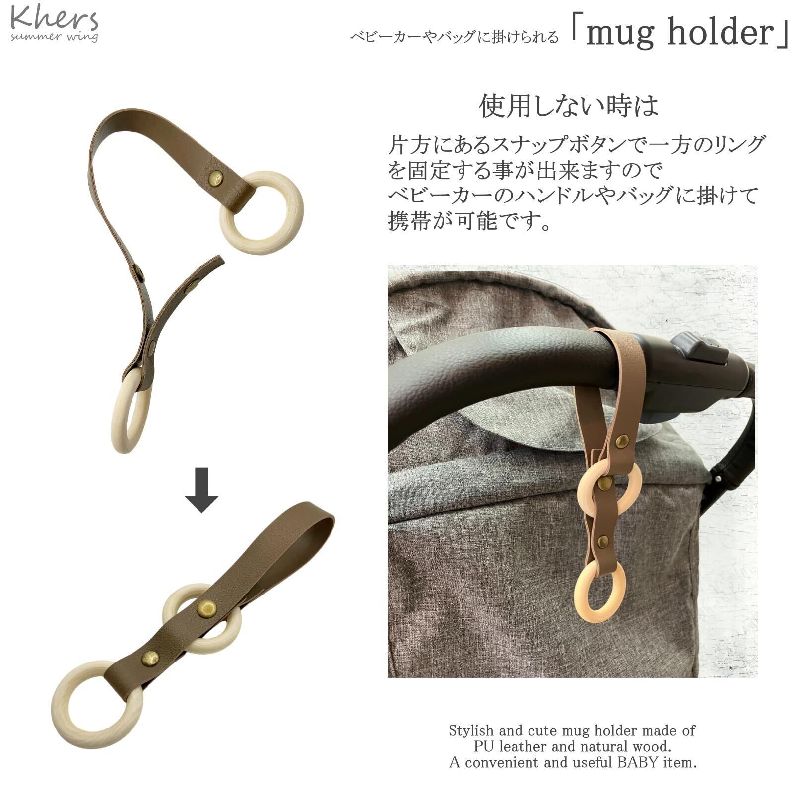 バッグやベビーカーに取り付けてもオシャレで合わせやすい、PUレザーベルト&天然木リングのマグホルダーです。 また、片方中央寄りにスナップボタンがありますので、もう一方のリングを留める事が出来、バッグやベビーカーに掛けられる携帯に便利な仕様になっております。