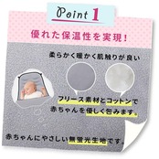 柔らかく暖かく肌触りが良いフリース素材とコットンで赤ちゃんを優しく包みます。