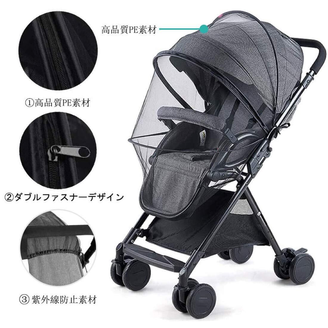 ベビーカー 蚊帳 幼児 赤ん坊 UVカット 日よけ 蚊 虫よけ 通気性 折り畳み お出かけ 風除けベビーカーカバー ブラック