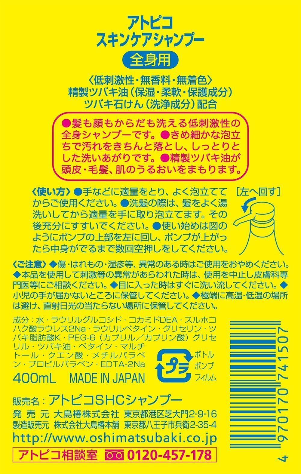 atopico 大島椿 アトピコ スキンケアシャンプー 400mL ベビー 全身 全身シャンプー 敏感肌 乾燥肌 低刺激性 保湿 精製ツバキ油配合 ポンプタイプ おまけ付