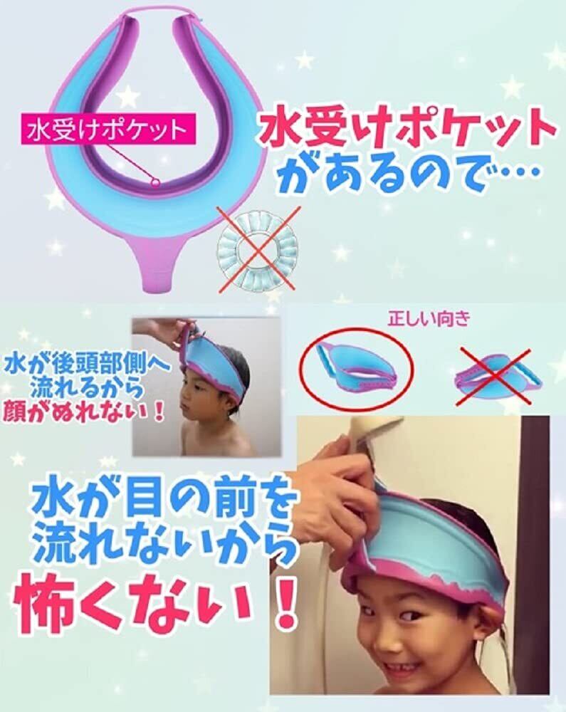 形状が、従来のシャンプーハットに見られる「輪っか」ではなくアルファベットの「U字型」です。そのため、サイズ調整不要、髪の長い女の子も後ろ髪を洗い流しやすい… 表示を増やす