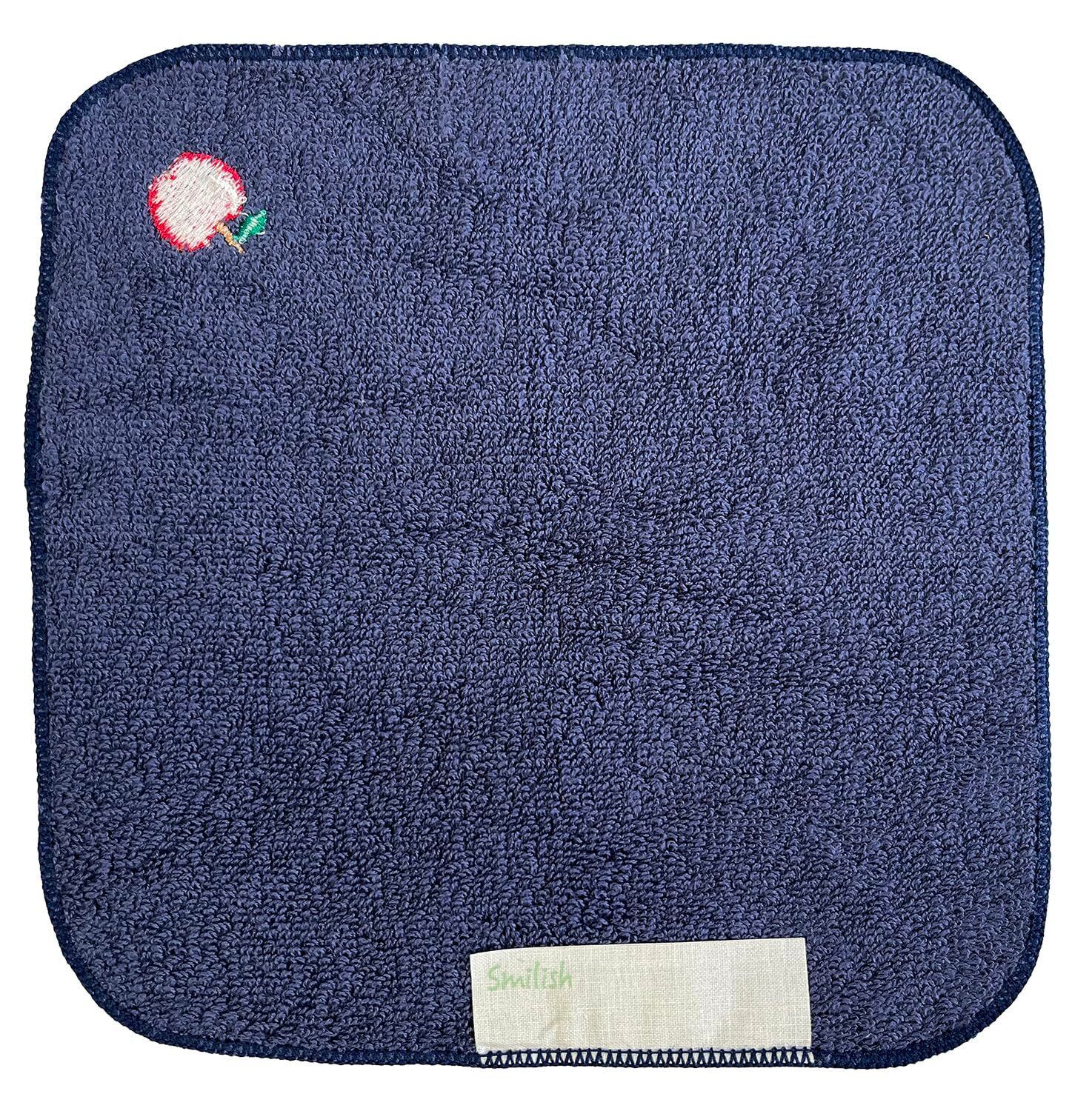 今治タオル×スマイリッシュ ミニタオルハンカチガールズ2枚セット.名入れスペース付(白リンゴ&ネイビーリンゴ)
