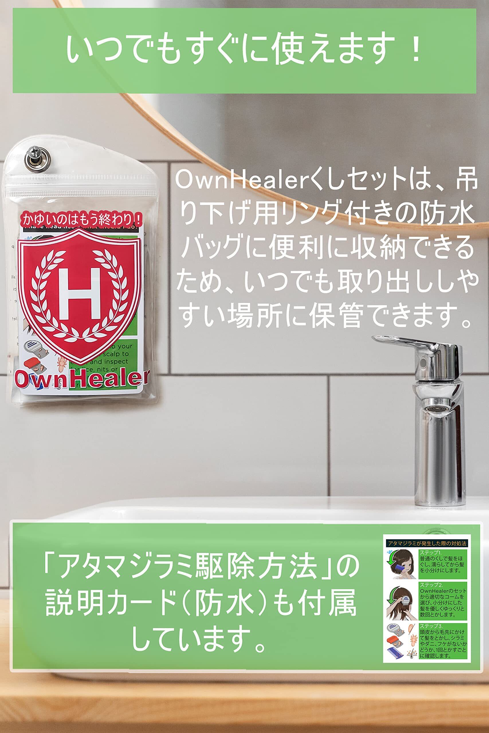 OWNHEALER シラミくしセット 3個入り シラミ 卵の検出・除去 子供から大人まで対応 含まれるもの インストラクション 収納用カバー