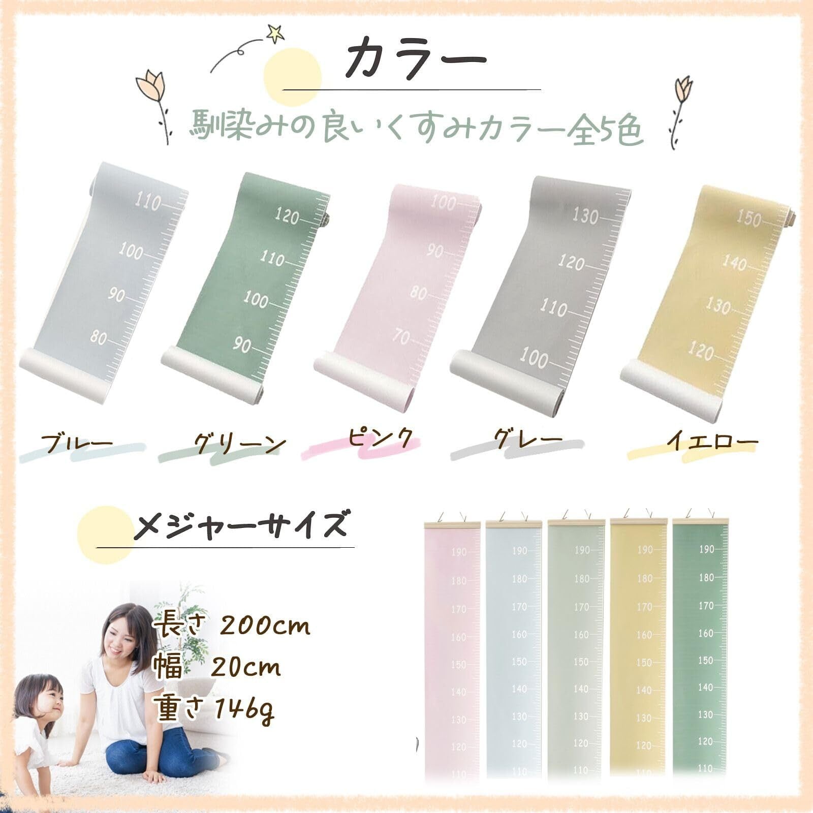 身長計 壁掛け 測定器 子供 ペンで書ける おしゃれ 北欧 木製 パイン材使用 全5色 計測2m (グリーン)