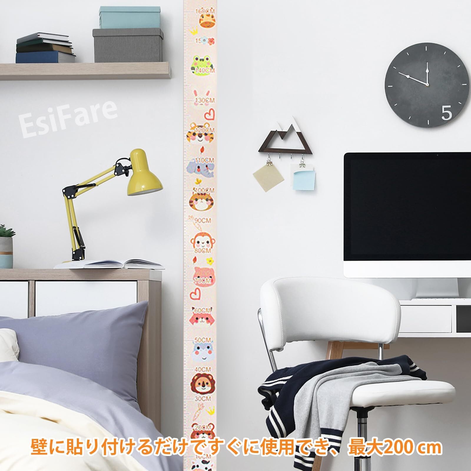 【数量限定】EsiFare 身長計 壁貼り 子供身長計 壁掛け 測定範囲0-200cm 子供の成長記録 一体型 ステッカー 身長計 ウォールステッカー 精度高い こども 身長測定 ステッカー 取り付け簡単 目立たない こども部屋 リビング インテリア 目盛り 出産祝い プレゼント 貼ってはがせる はっきりした目盛り 可愛い (動物園) | jake