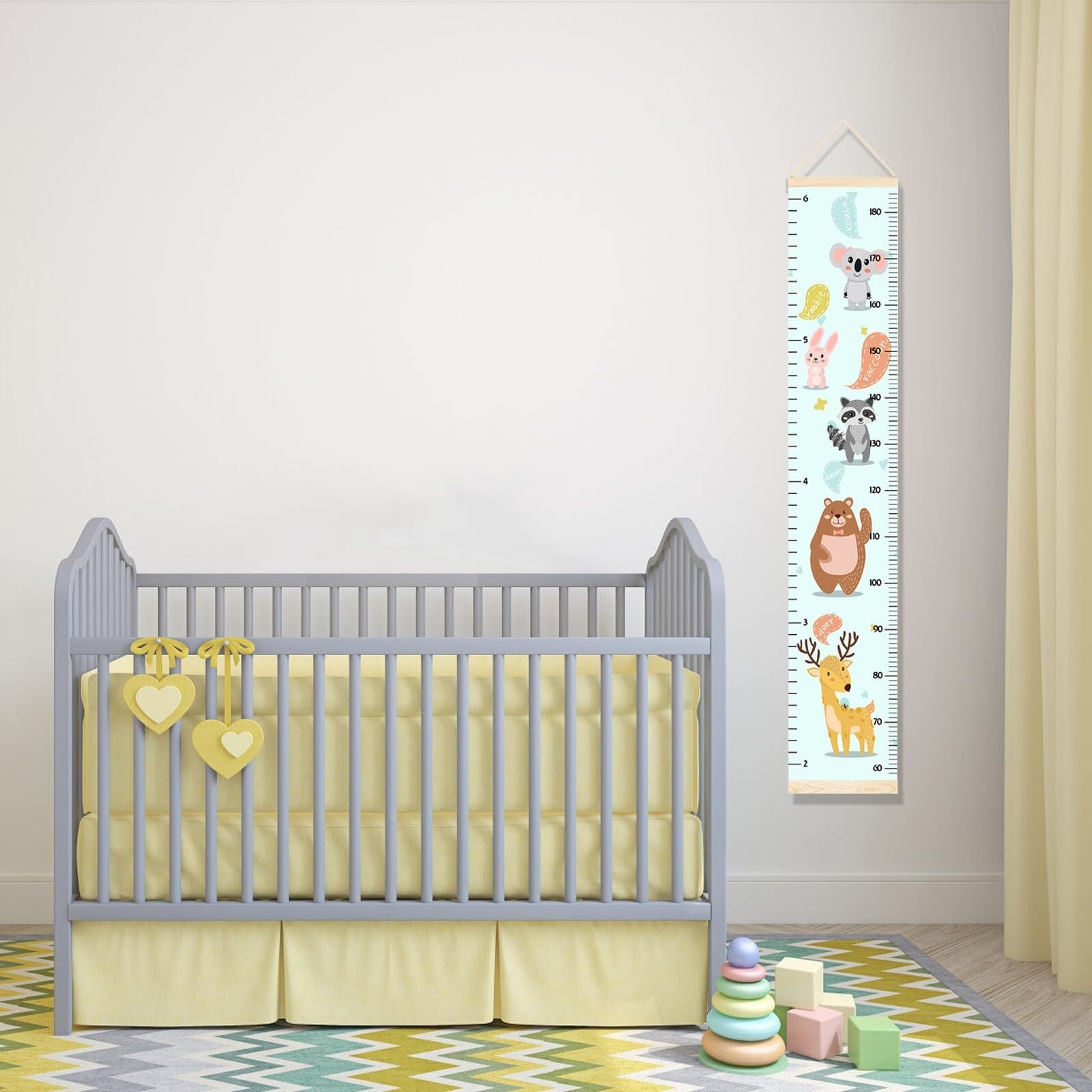 成長チャートのキリン、ウサギ、クマなどのかわいい動物のモチーフは、お子様の注意を引き付け、明るく魅力的な環境を作り出します。
