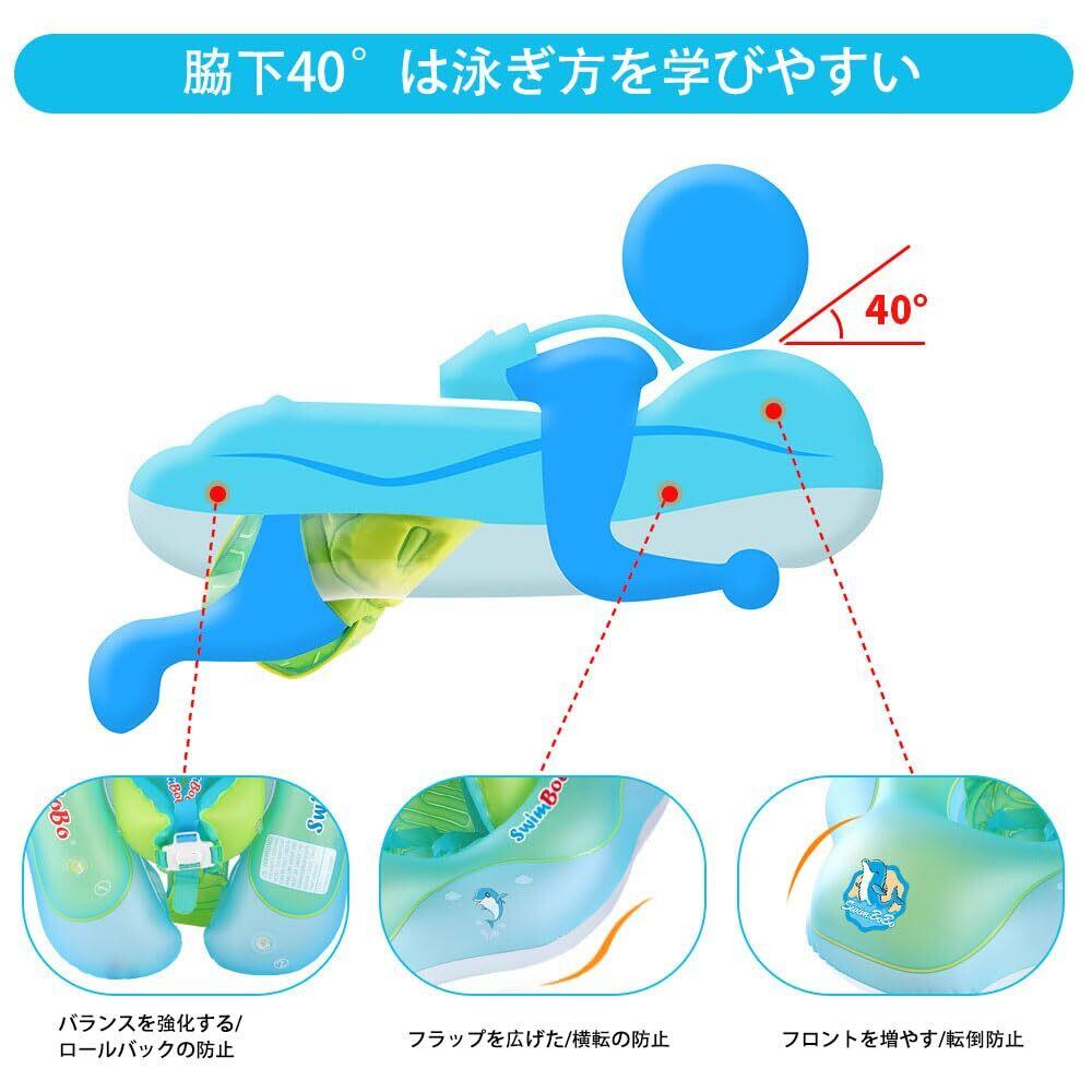 【高品質ベビー用浮き輪】二重エアバッグデザインで、水中で非常に安定しています。多種のひも付き、安全性が高いです。素材には、環境に優しいPVC素材を使用し、耐久性、安全性、快適性に優れています。子供にとっても優しいです。また、高密閉性のスペースバルブが備わっており、効果的な密閉性を提供し、長期間使用しても空気が漏れる心配する必要はありません(約80%まで膨らませると快適な状態です)。