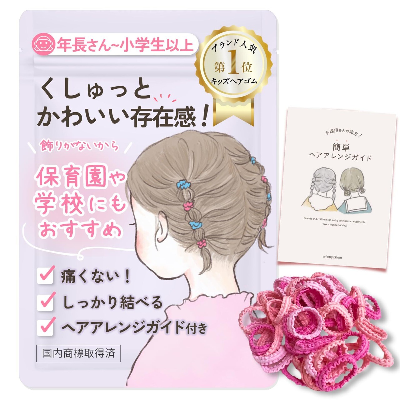 wippyperro 【 ちぎれにくい & 結ぶだけで可愛い】 ヘアアレンジ ガイド付 ヘアゴム 子供 髪ゴム 絡まない ベビー 赤ちゃん 痛くない 保育園 (ぴんく)