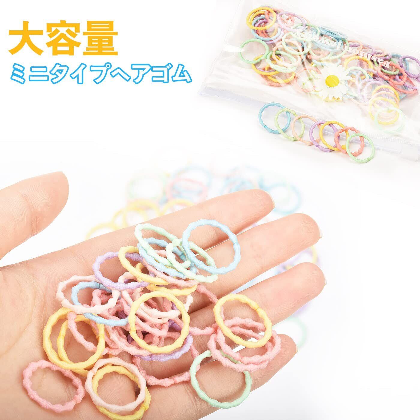 mefeny ヘアゴム 子供 ゴム キッズ 小さめ 髪ゴム 大容量 絡まらない アクセサリー カラフル 女の子 ベビー 保育園 (波状-カラフルA3)