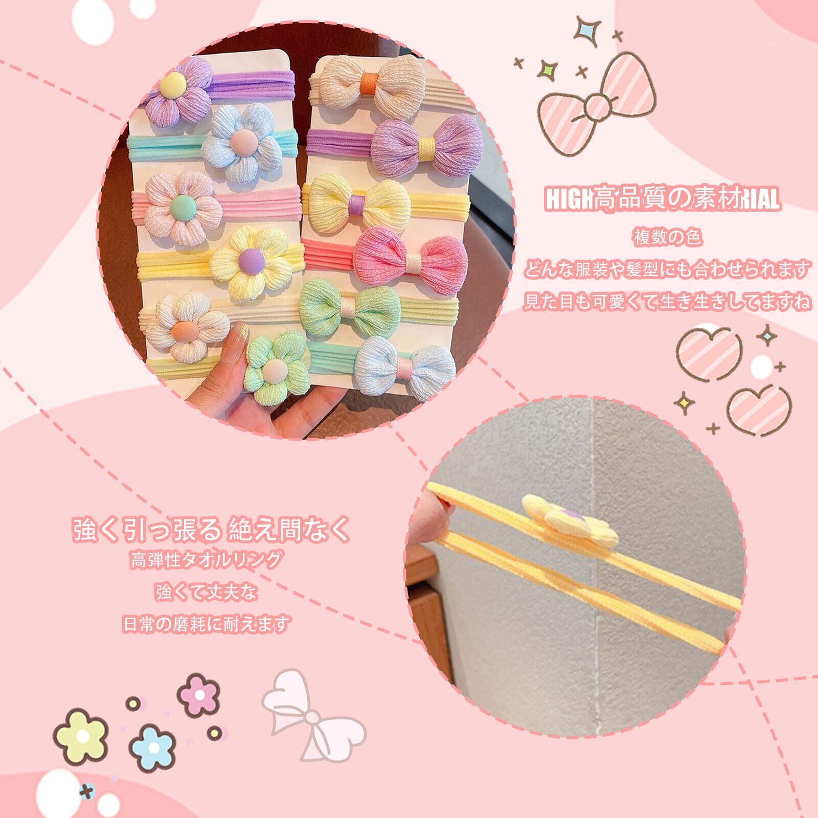 【新春セール】ヘアゴム 子供 12本セット おしゃれ 可愛い カラフル 花 リボン 蝶結び キッズ 絡まない 痛くない 髪ゴム 幼児 女の子 ヘアアクセサリー 髪留め 髪飾り 女の子 キッズ ベビー 赤ちゃん 幼稚園 保育園 (A 12本) | jake