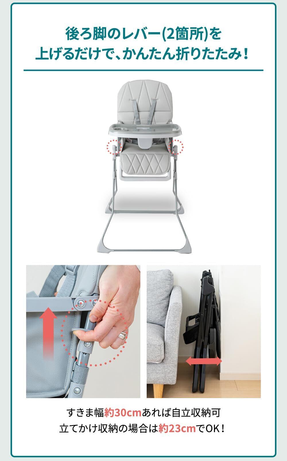 【2025年3月発売】Nebio(ネビオ) ベビーハイチェアテーブル付き 落下防止 コンパクト 簡単組み立て 6ヶ月~36ヶ月 簡単サイズ調整 テーブルの食品衛生法検査済み 離乳食 食事用 出産祝い 自立式折りたたみベビーハイチェア S-1