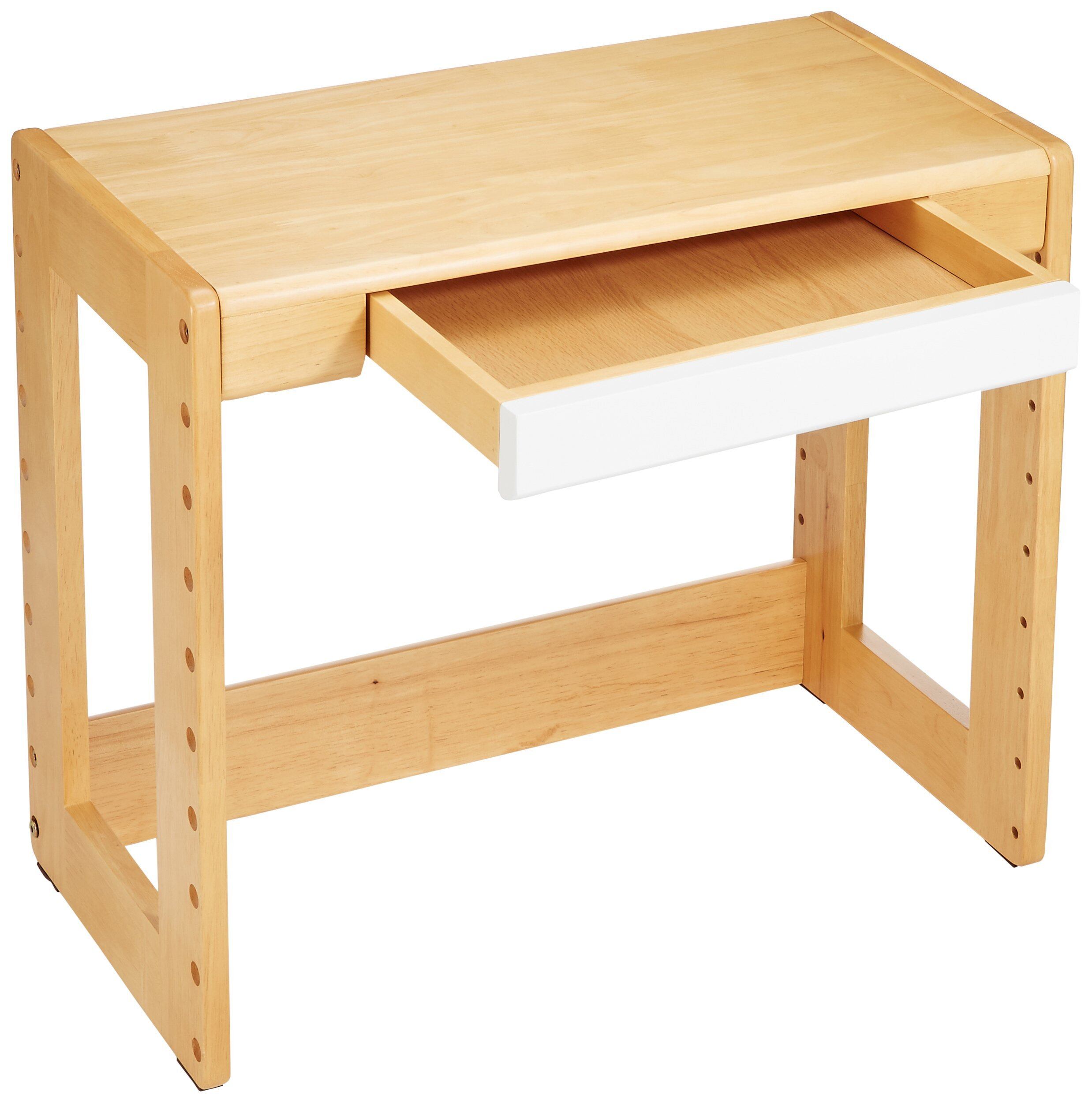デスク天板は10段階5cmピッチで高さ調節可能。便利な引出し付き。