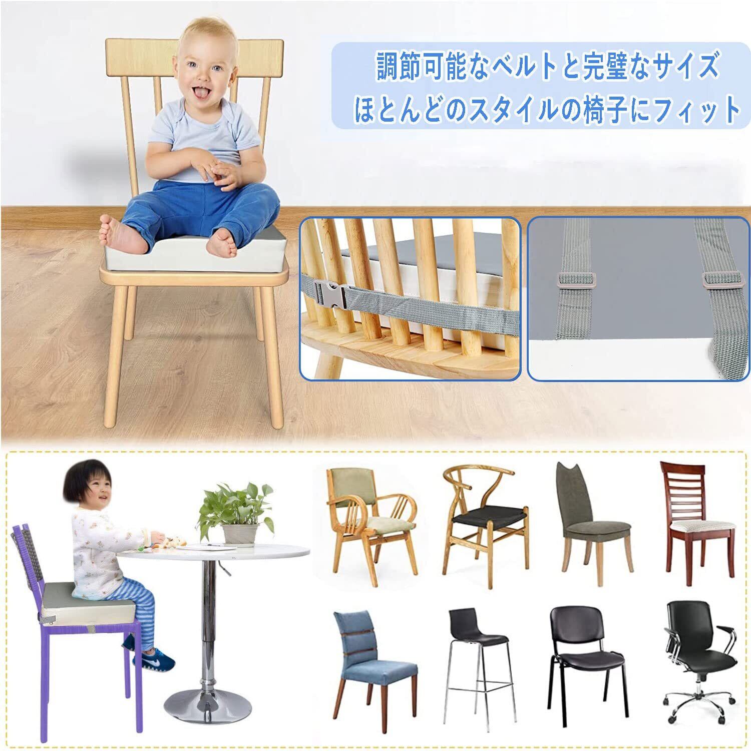 高さ調節お子様用クッション こどもお食事座布団 ダイニング チェア クッション ポータブル 取り外し可能 ハイチェア ブースター キッズ用 ウォッシャブル い チェア シート パッド マット 布 ストラップ (グレー)