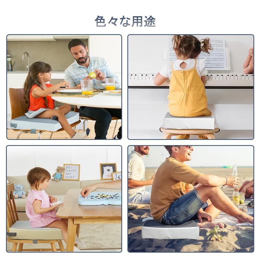 BTtime 食事 クッション こども チェアクッション 取り外し可能 高さ調節 クッション ひも付き 厚い チェア シート (グレー+ベージュ)
