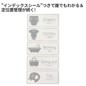 ③ひと目でわかる定位置管理&インデックスシールつき…剥離式のインデックスシールで家族だれでもわかる!戻せる!整理が続く!