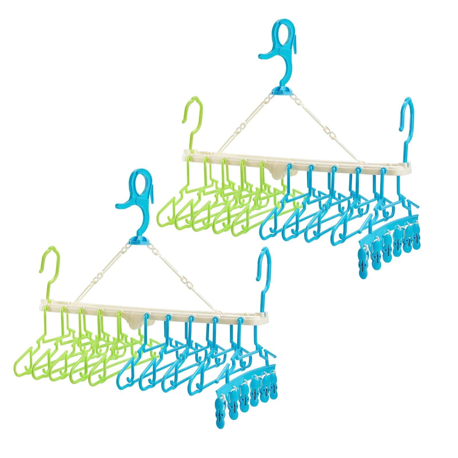 ベビーハンガー 赤ちゃん10連ハンガー 2個セット 多機能 折りたたみ 子供ハンガー 取り外し クロゼット収納 省スペース 洗濯物ハンガー グリーン ブルー