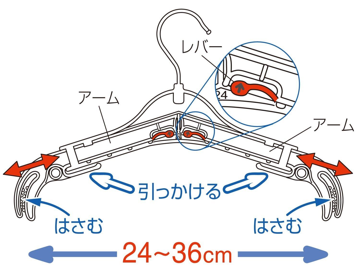 ●アームが5段階(24、27、30、33、36cm)に伸び縮みするので洋服のサイズが大きくなってもジャストフィットします。