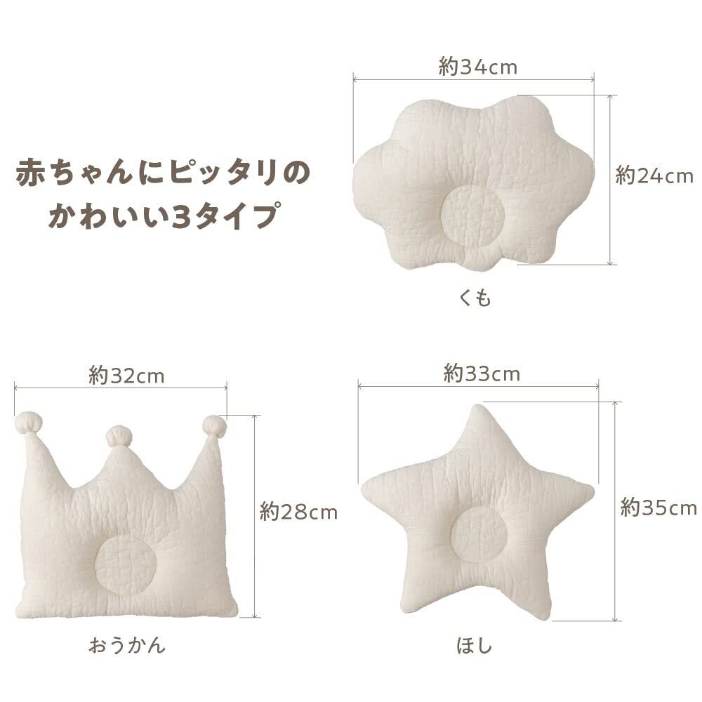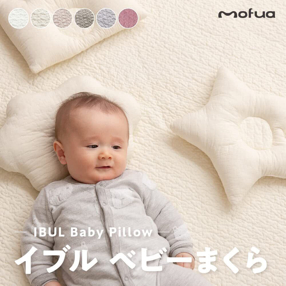 mofua(モフア) イブル クラウド柄 綿100% ベビー枕はとってもキュートな、くも・おうかん・星のかたちの3タイプからお選びいただけます。性別を問わず、かわいい赤ちゃんのファーストまくらにぴったり。mofuaロゴ入りリボン付きパッケージもかわいく、出産のお祝いやプレゼントにも喜ばれます。