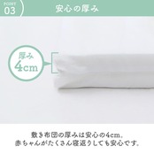 仕様:[掛けふとん]約95×約120cm ポリエステル100%[敷きふとん]約70×約120cm ポリエステル100% 厚み約4cm[枕]約35×約25cm ポリエステル100%