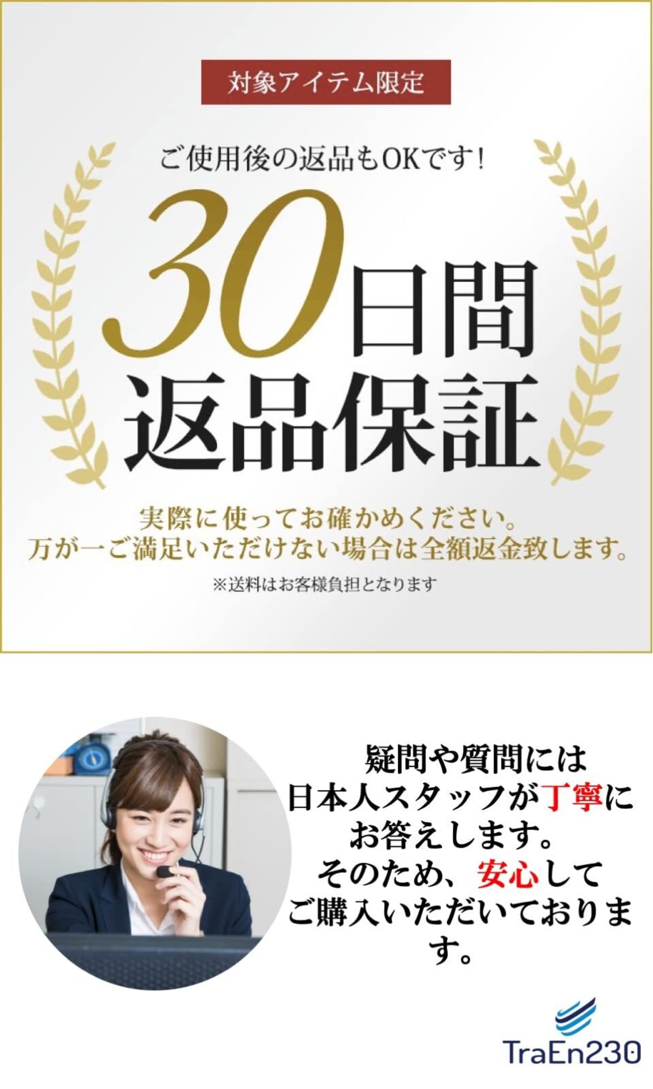 【】 ︎ 製品は全て検品後出荷しております。ただ万が一、不備があった場合は、出荷後30日の期間内であれば、無償で良品と交換いたします。面倒もありません。とても簡単です!