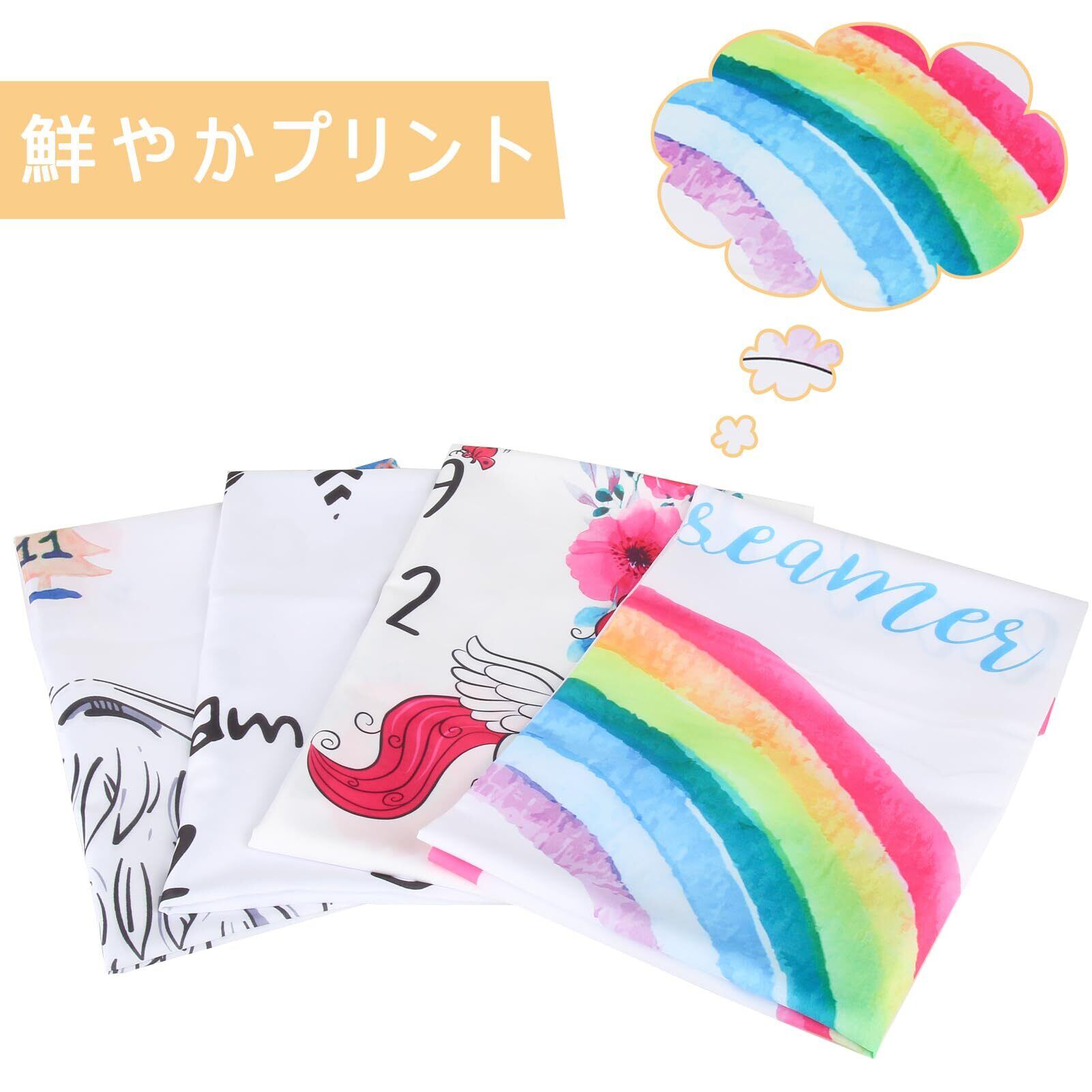 【在庫セール】Sitengle 寝相アート 月齢フォト マット ベビー 撮影シーツ 薄手タイプ 100*100CM月齢カード付き 月齢フォトグッズ ベビー 撮影記念 月齢フォトシーツ 寝相アート 女の子 男の子 百日記念 新生児プレゼント 誕生日 お祝い 出産祝い 写真道具 成長記録 (ユニコーンと花輪)