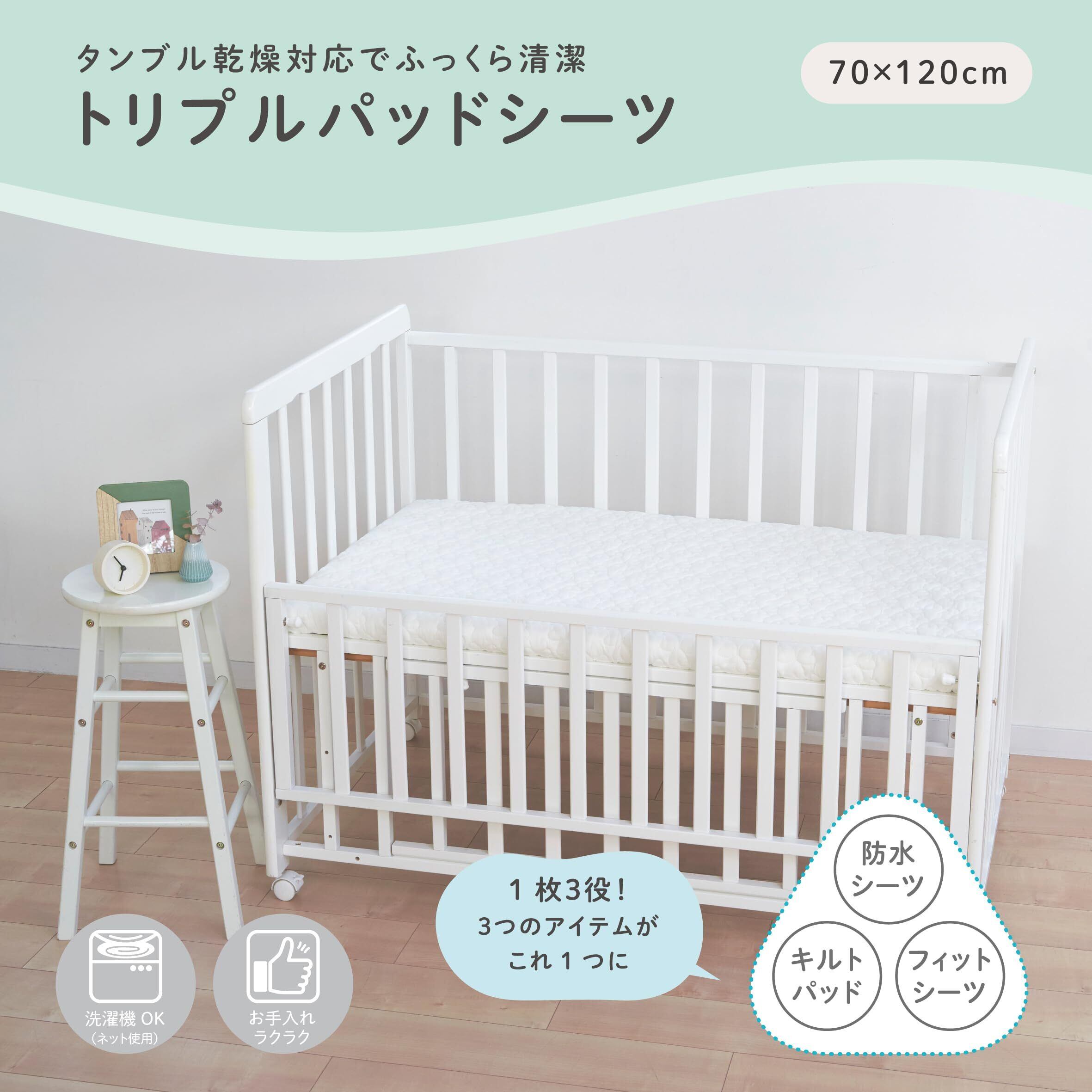 nishikawa【西川】 トリプルパッド 70X120cm 洗える 1枚3役 で 防水シーツ・キルトパッド・フィットシーツ babyhome ホワイト WM55359000