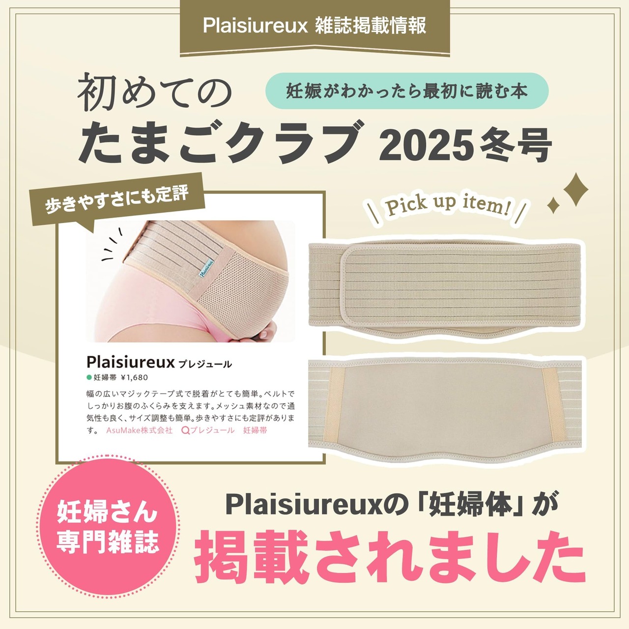 【商品仕様】〇サイズ:Lサイズ(全長110cm)XLサイズ(全長120cm)幅約15cm 〇カラー:ベージュ 〇セット内容:マタニティベルト、取扱説明書 〇ブランド:Plaisiureux(プレジュール)