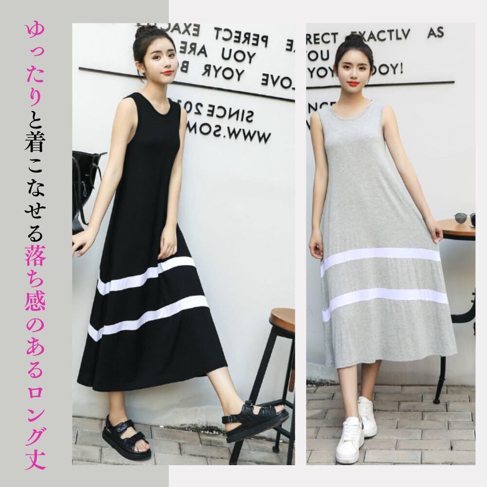 夏に大活躍間違い無しなノースリーブ型ワンピースの登場です! 薄手でやわらか、暑い季節でもゆったりと着こなせる落ち感のあるロング丈で、Aラインからくるなだらかな印象が大人かわいい、そんな一着 清涼感漂うシンプルなデザインとモノトーンカラーは、暖かい季節でもすっきりとしたスタイルを演出でき、汗ばむ時期を快適に過ごせる今夏マストなアイテム間違いなし◎ リラクシーな雰囲気のロングワンピースです。 ※ご身長により、マキシサイズやミモレサイズになる場合もあります。