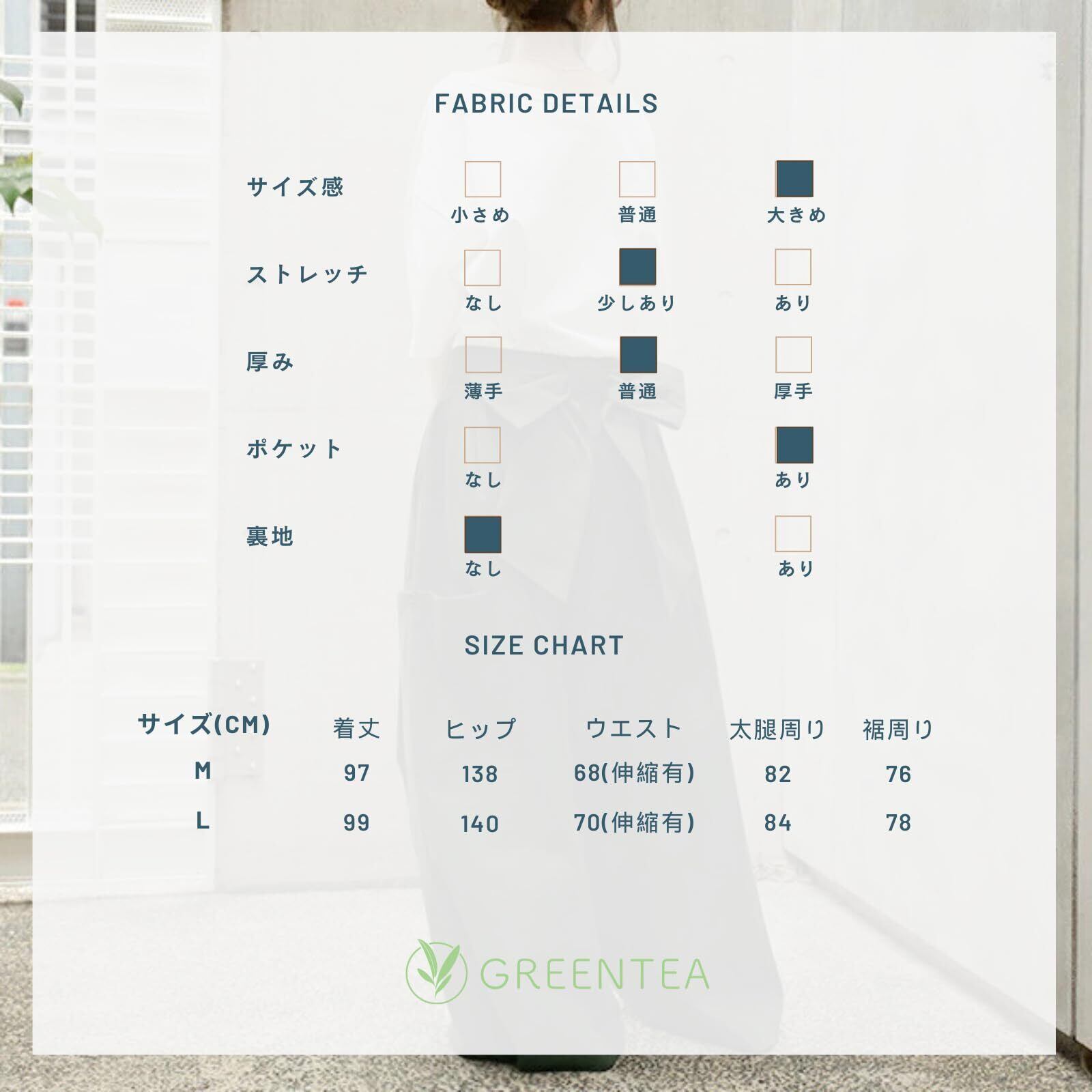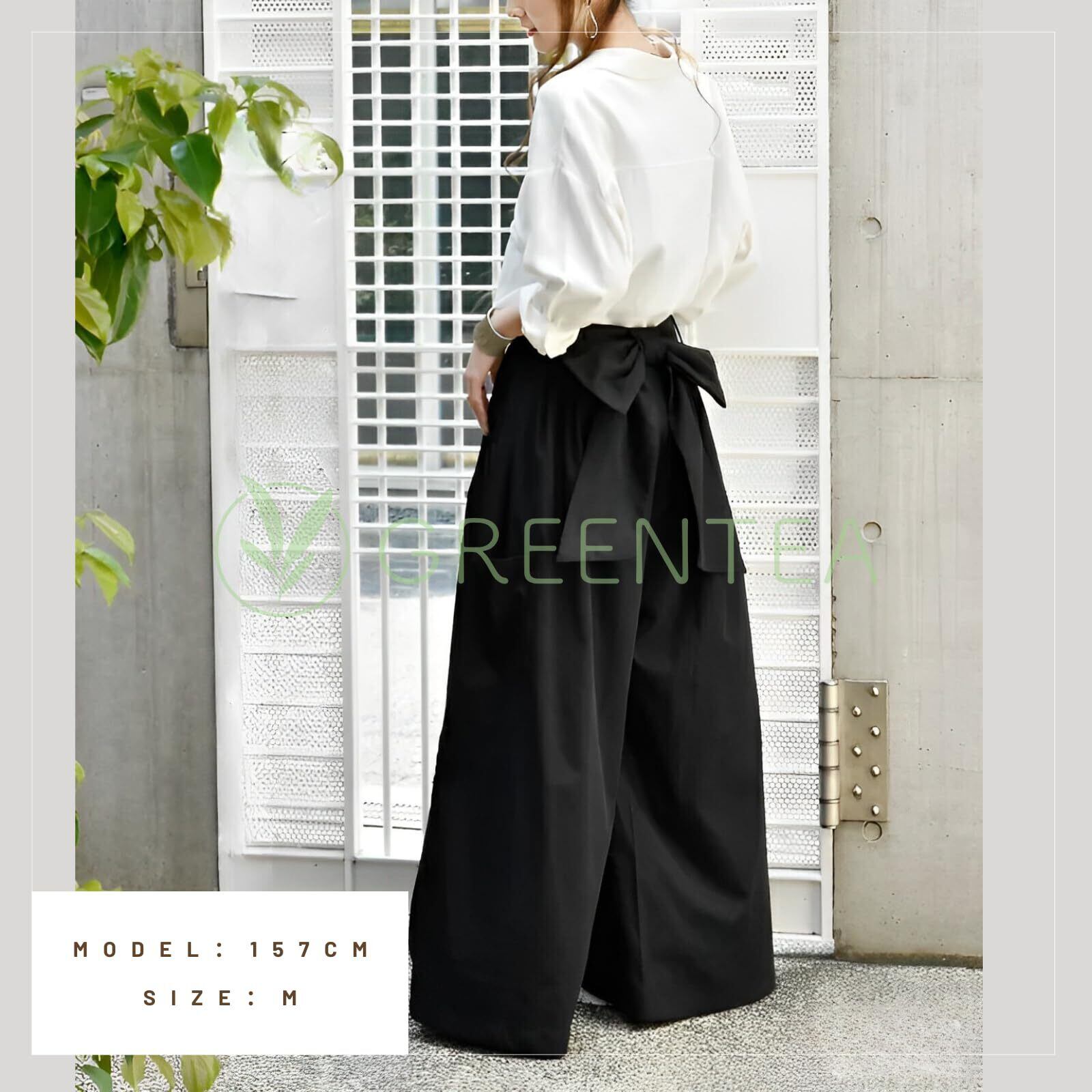 Greentea ワイドパンツ レディース ワイドボトムス バックリボン 大きいサイズ ゆったり カジュアル M L