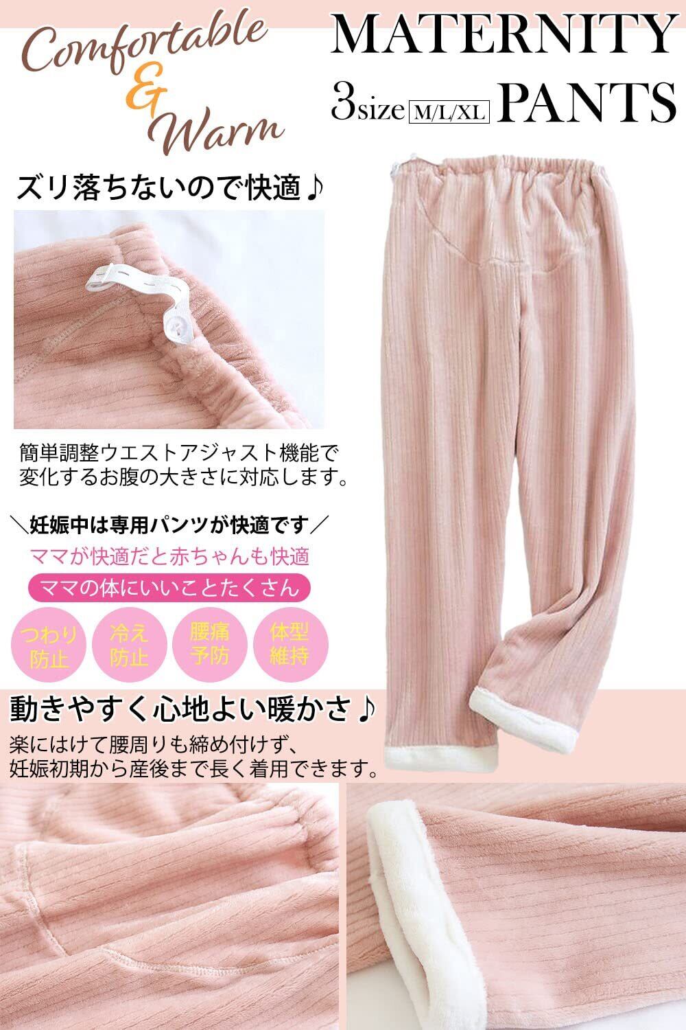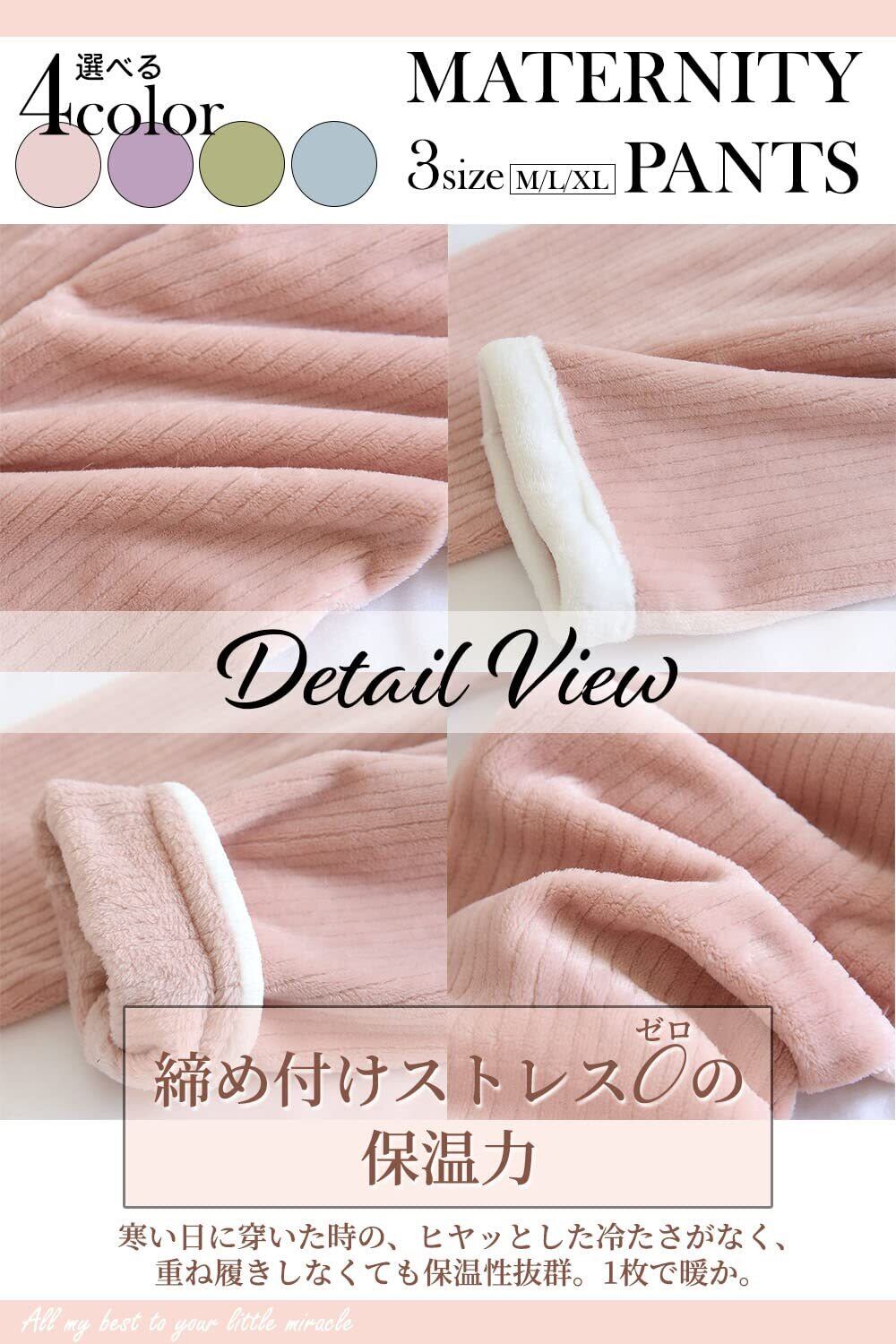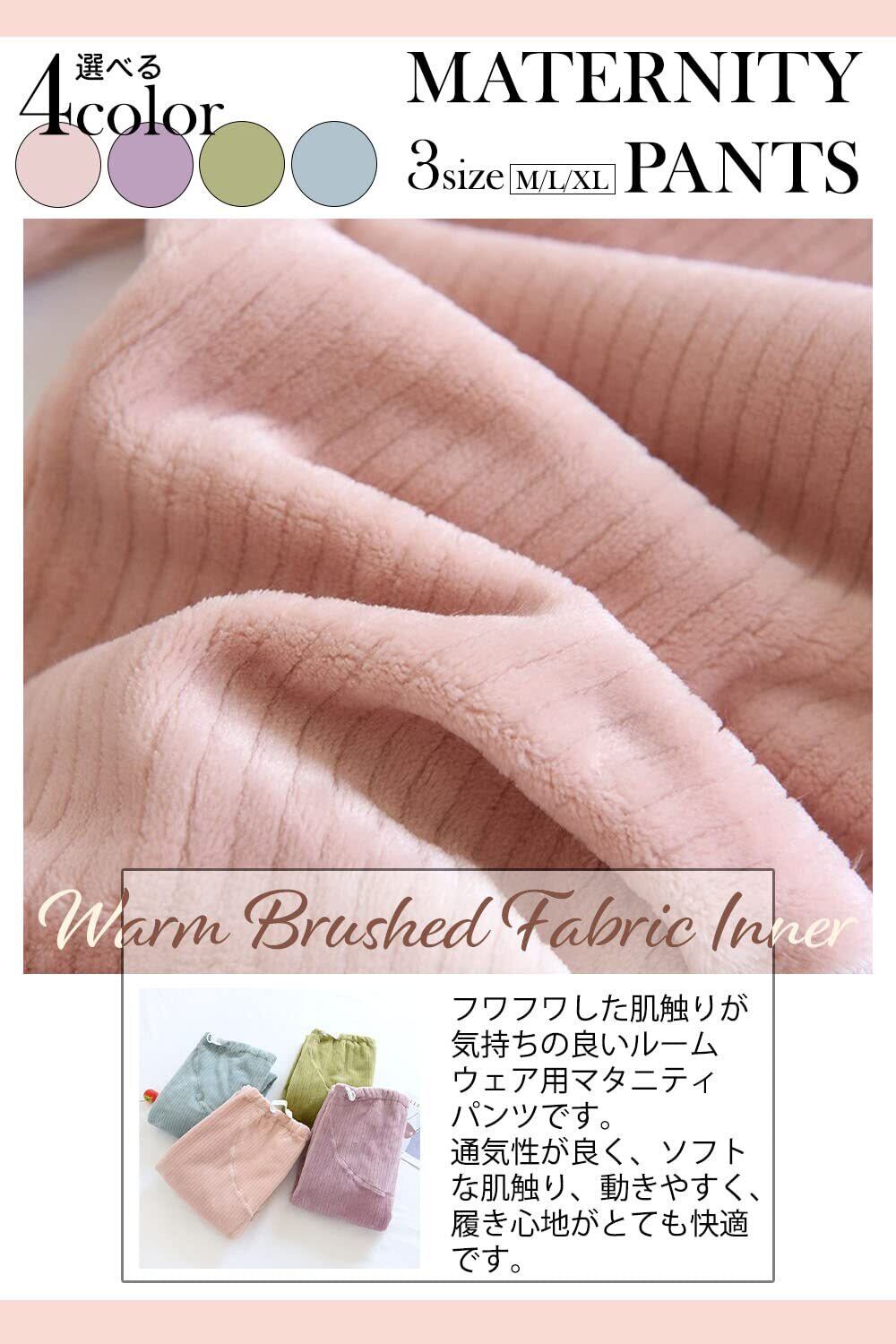 【穿き心地抜群ふんわり手触りのマタニティパンツ】お腹まわりまでやさしく包み込んでくれるフランネル素材のマタニティパンツです。裏地も表面と同じ素材で、下半身全体がやさしく包まれます。
