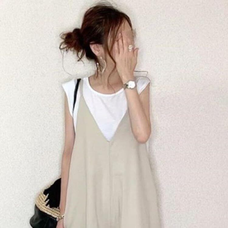 オシャレな女性にぴったりのサロペットが登場しました!このキャミサロペットは、Vネックデザインが女性らしさを引き立て、着痩せ効果も抜群。ゆったりとしたシルエットが体型をしっかりカバーし、どんな体型の方にもぴったりフィットします。肩紐でサイズ調節ができるフリーサイズ仕様なので、マタニティ中の女性にもおすすめ◎