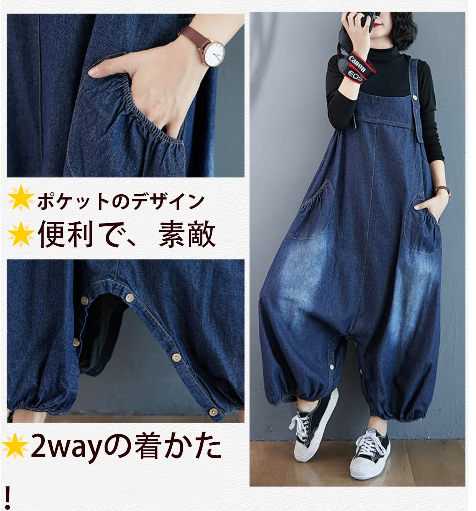 【2022最新】MMTYRM サロペット レディース ゆったり オーバーオール デニム パンツ ジーパン サルエル パンツ おしゃれ デニム ワイドパンツ 九分丈 留めボタン2way レディース 大きいサイズ ジーンズ