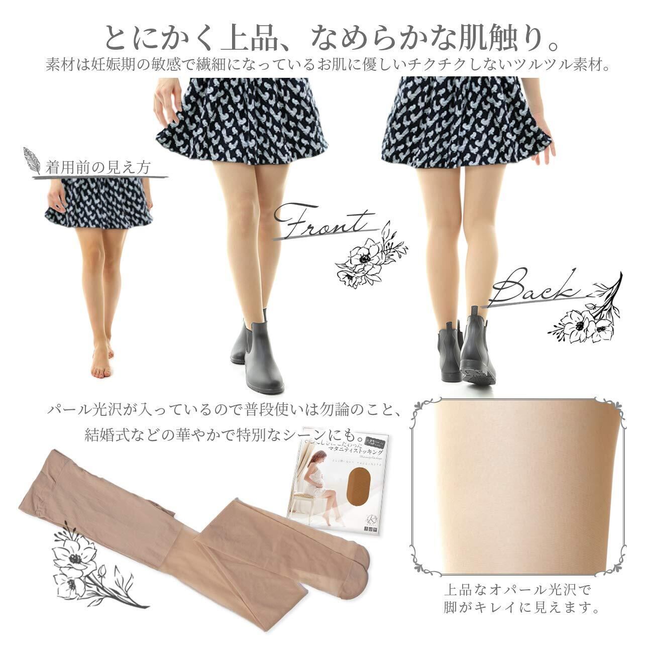 【スッキリ美脚効果】脚部分は妊娠中の脚のむくみを軽減、予防してくれる適度な引き締め&着圧感。上品なパール光沢が、まるで脚に光のベールをまとったようにシミやアザ、虫刺され跡なども目立たなくしてくれます 普段使いは勿論、結婚式などの華やかなシーンにもお使いいただけます。