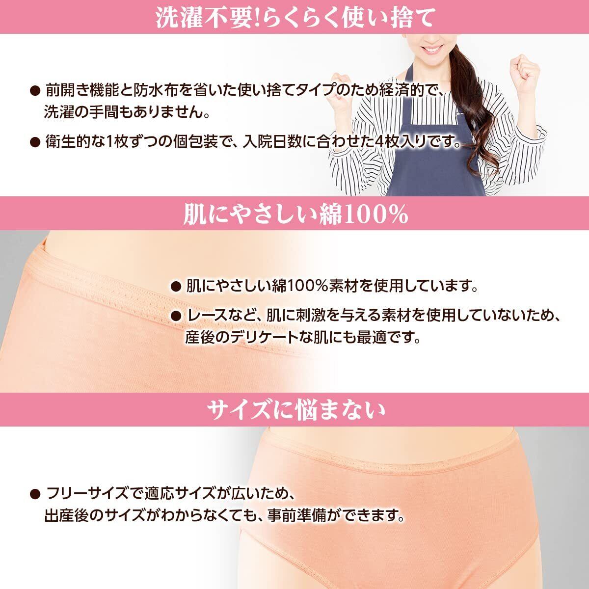 ●衛生的な1枚ずつの個包装で、入院日数に合わせた4枚入です。