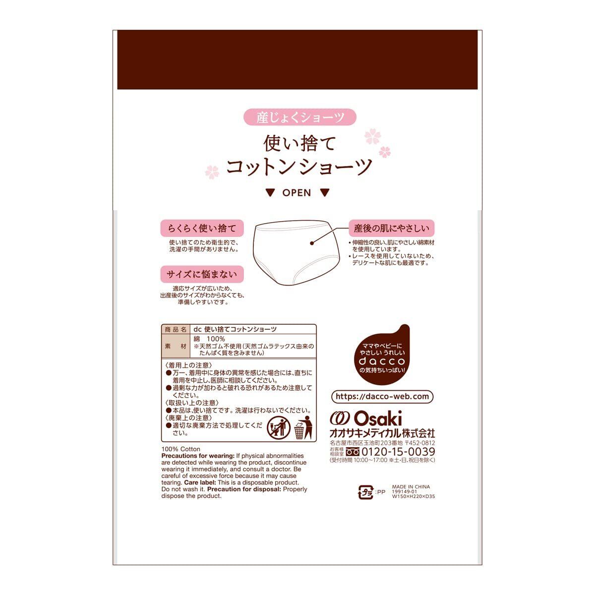 dacco(ダッコ) 産じょくショーツ 使い捨てコットンショーツ フリーサイズ ピーチピンク1枚入×4個(4枚入) 個包装 出張 旅行 綿100% 84932