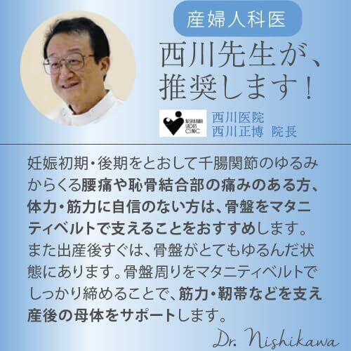 妊娠・出産で緩んだ恥骨結合部分を含む骨盤関節と人体を支え、体の軸をサポートする骨盤ベルトです。妊娠中は、骨盤を支えます。産後は、産後すぐに着用する産褥ベルトとしても使え、その後も恥骨結合部分を含む骨盤関節の骨盤ベルトとしてご使用できます。【使用時期】●妊娠初期からも可能ですが、妊娠5か月以降からをおすすめ致します。ホルモンの分泌により出産準備に入り、骨盤周辺の骨と骨の間の結合部分や靭帯が緩んできますので、その頃からが実感していただきやすいです。産後は、産後すぐからお産の際に骨盤や靭帯が緩んだ状態にある産後1年くらいまでのご使用をおすすめ致します。●その他、産前産後以外でも骨盤ケアベルトとしてお使いいただけます。【着用位置と注意点】※パッケージの写真と合わせてご覧ください。●着用位置はベルトの下辺部分が恥骨の上を通るように合わせ、お尻にかけて下辺部分が平行になるように装着。●注意点は、締めつけず手のひらが入るくらいの締め加減で、ベルトを体に沿わせるような感覚で着用。絶対に腹部には巻かないようにし、腹部を締めることはお避け下さい。就寝中の着用は、ずれた時に気づかない恐れがあるのでおすすめ致しません。●体調に不安がある時、帝王切開の術後などの場合は必ずお医者様にご相談ください。