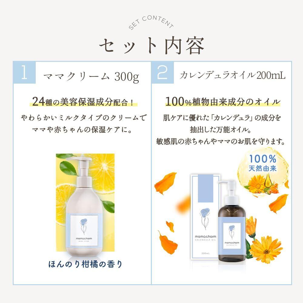 mamacharm マタニティ スキンケアセット 保湿クリーム 微香タイプ 柑橘系アロマの香り カレンデュラオイル 乾燥肌 無添加 妊婦 ママクリーム ママチャーム